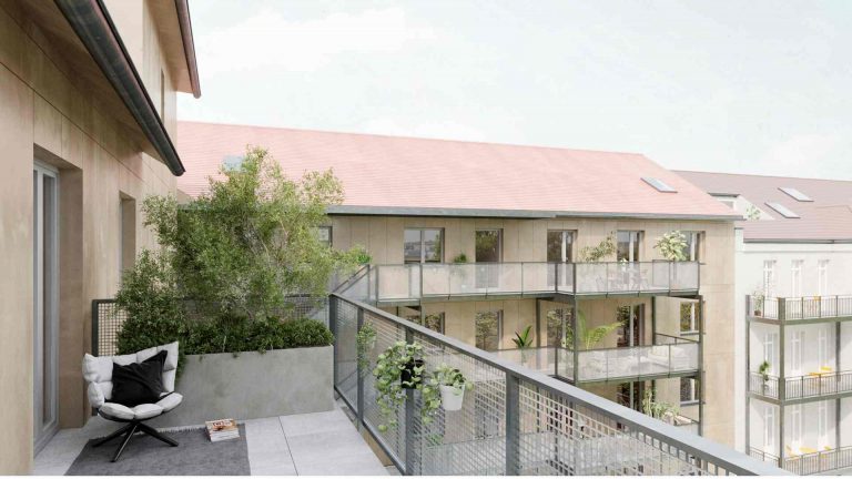 Mit dem Domizil Julius-Krause-Straße entsteht ein modernes Wohnhaus, das zeitlose Architektur mit nachhaltiger Bauweise verbindet. Die tragenden Elemente der Wohngeschosse werden in Holz ausgeführt, welches auch in den Decken sichtbar bleibt und den Wohnungen eine warme, natürliche Atmosphäre verleiht. Die Fassade erhält eine hochwertige, langlebige Gestaltung aus Faserzementplatten.